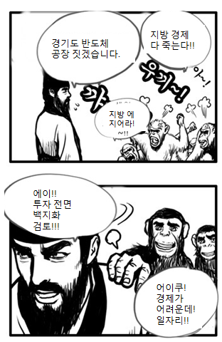 얼마전 용인에 공장을 짓기로한 하이닉스의 부지 선정 기간동안 정치권에서 구미 쪽 지으라고 은연중 압박을 넣는다는 기사를 본적이 있었는데.. 그때 대응했던 하이닉스의 말이 기억에 남는다. 구미로 가면 이번 국내 투자 전면 백지화 하겠다는 뉘앙스 였는데.. 다들 화들짝 놀랐던 기억이.. ㅎㅎ
